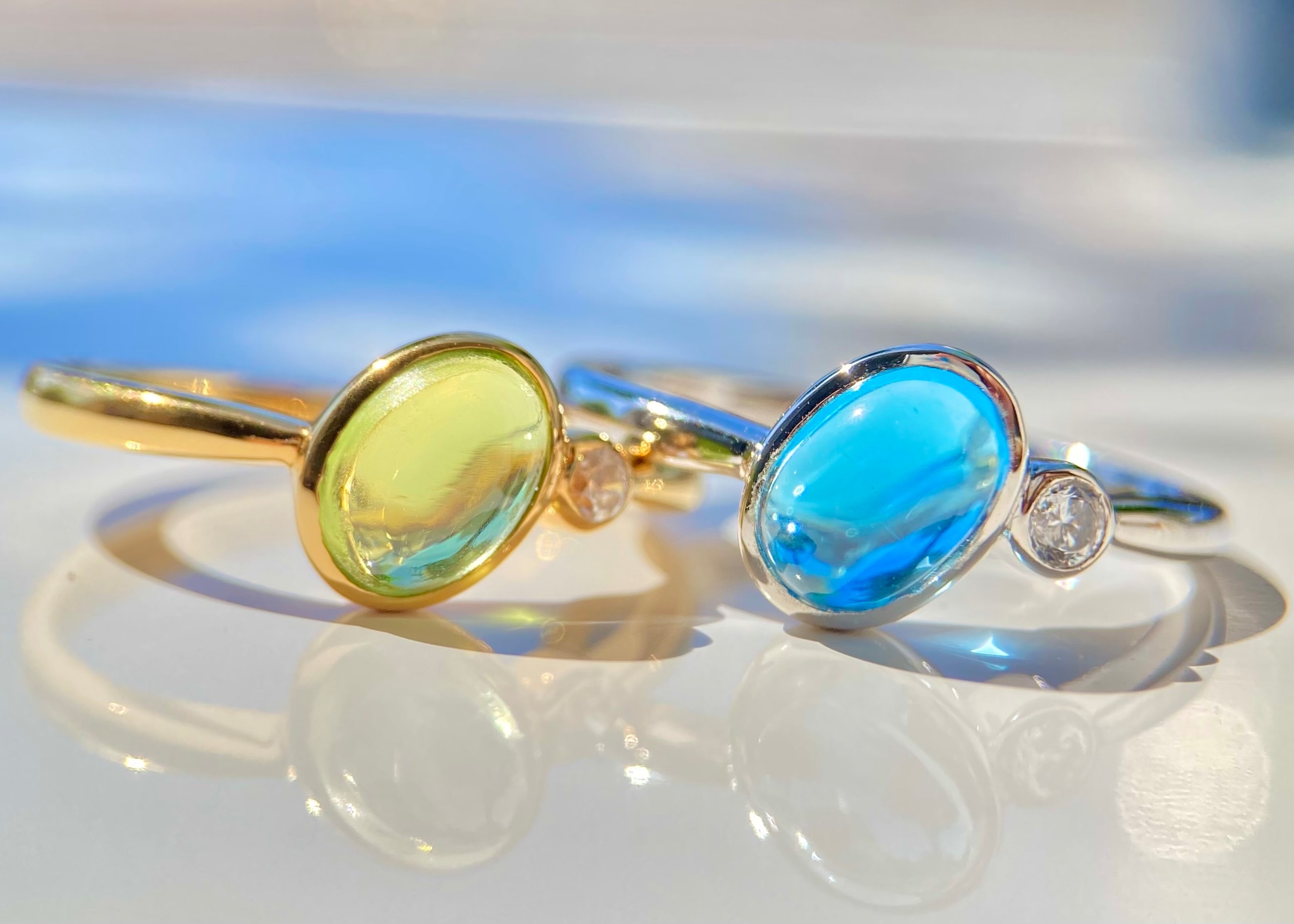一方、ブルートパーズの指輪は、静けさと癒しを感じさせる存在。