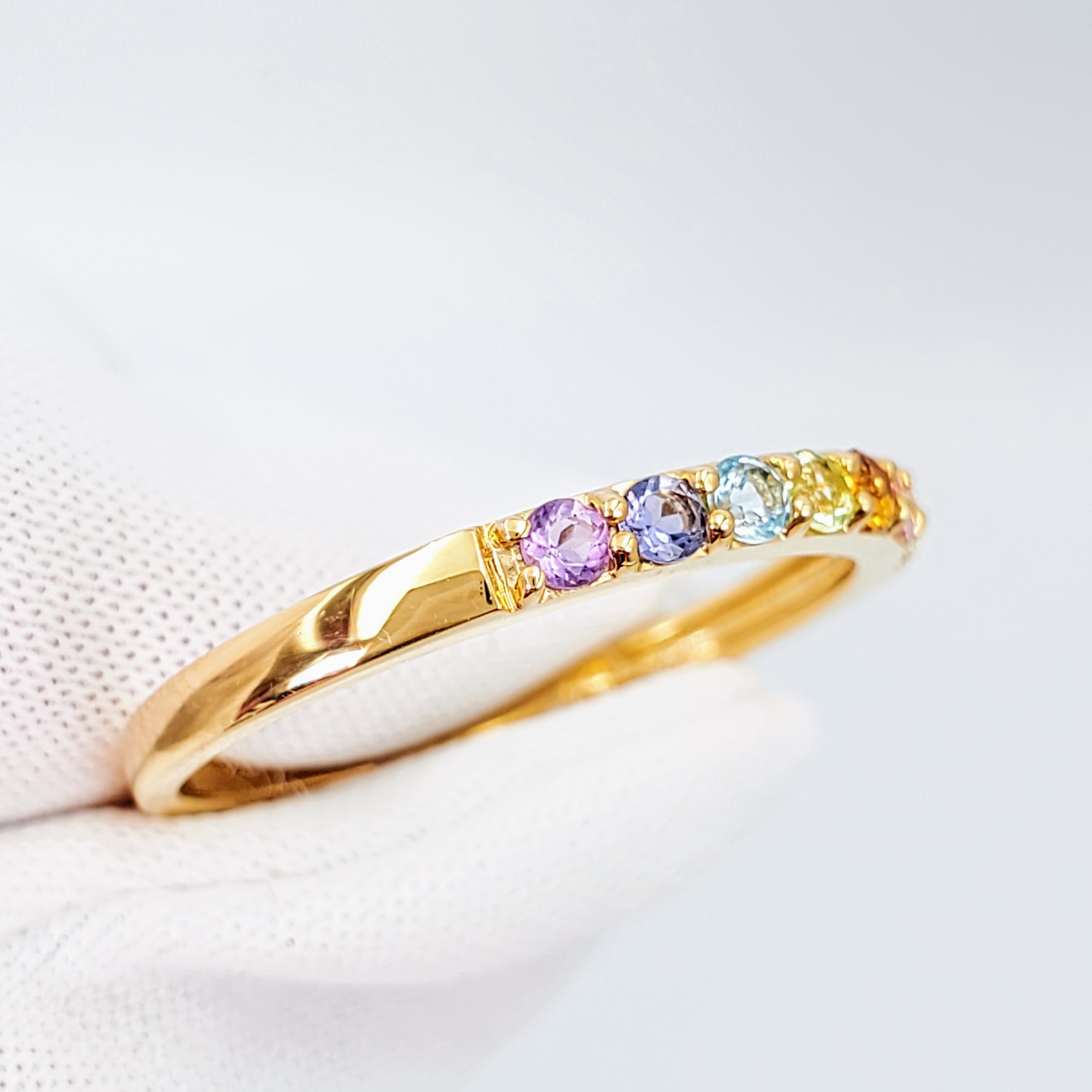 一石一石が異なる色合いを放ちながらも、ゴールドの明るい輝きと調和し、カジュアルに手元を照らします。
