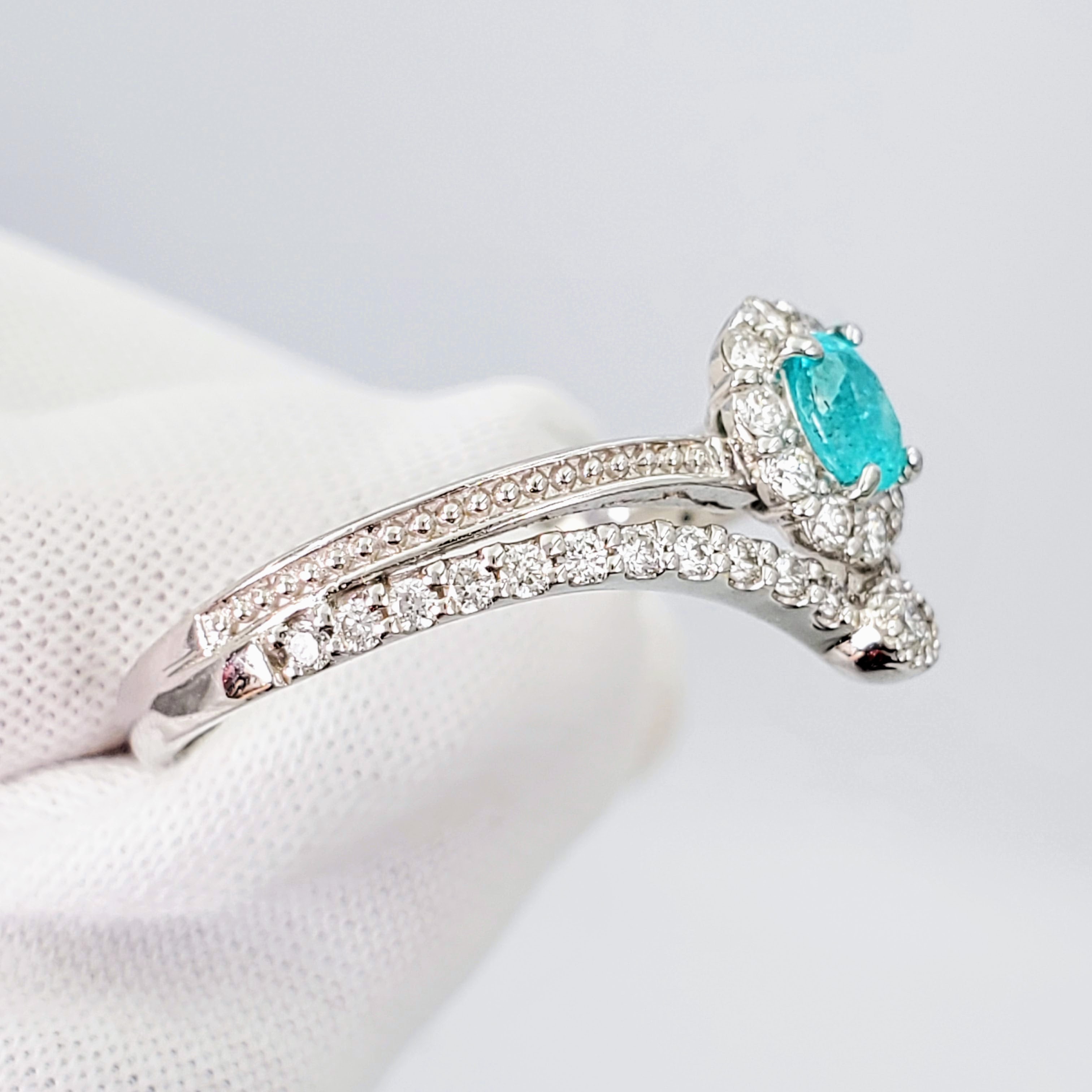 ネオンブルーのパライバトルマリンを中心に、繊細なダイヤモンドを贅沢にあしらった本作。