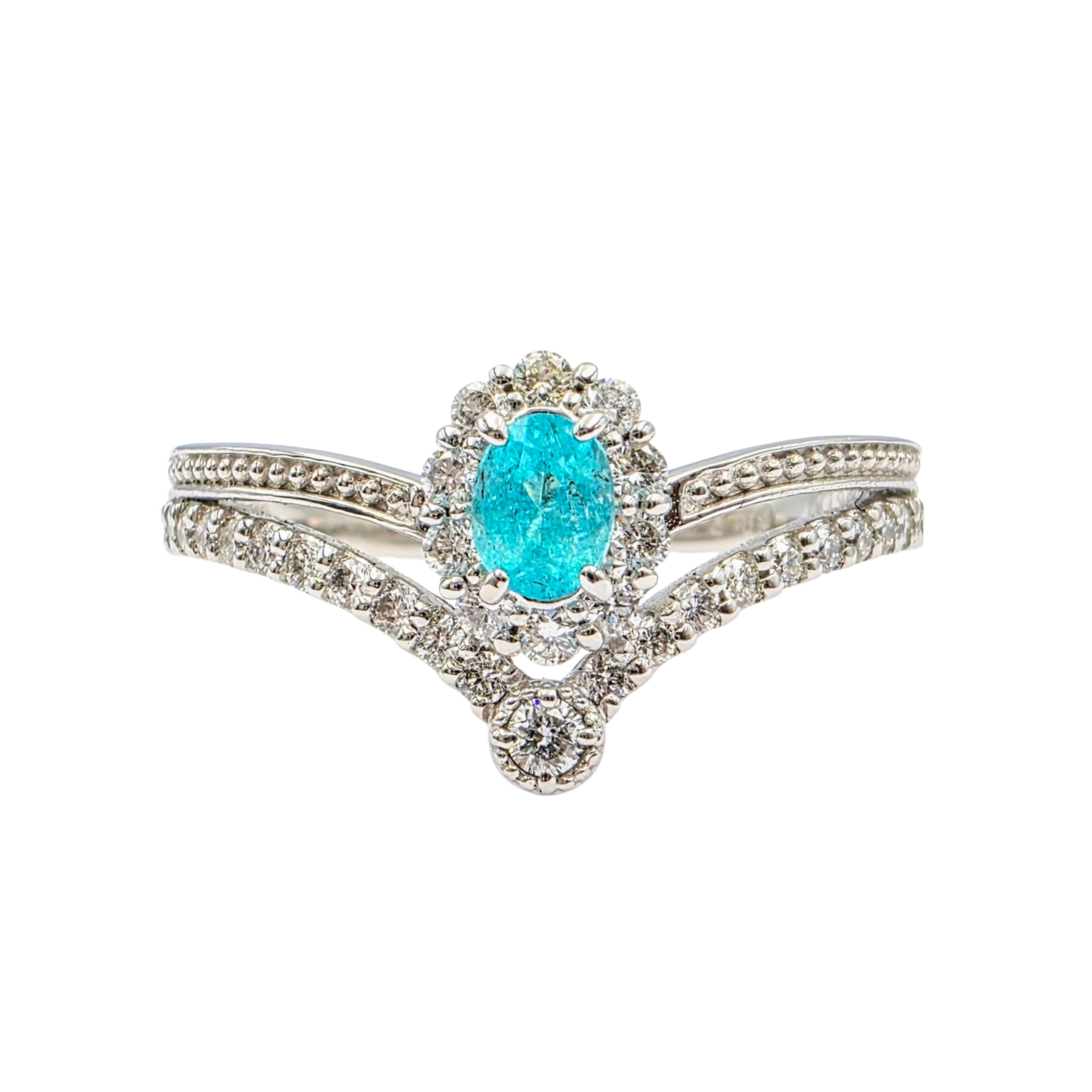 素材:Pt900、パライバトルマリン0.19ct(縦約4mm・横約3mm)、ダイヤモンド0.27ct