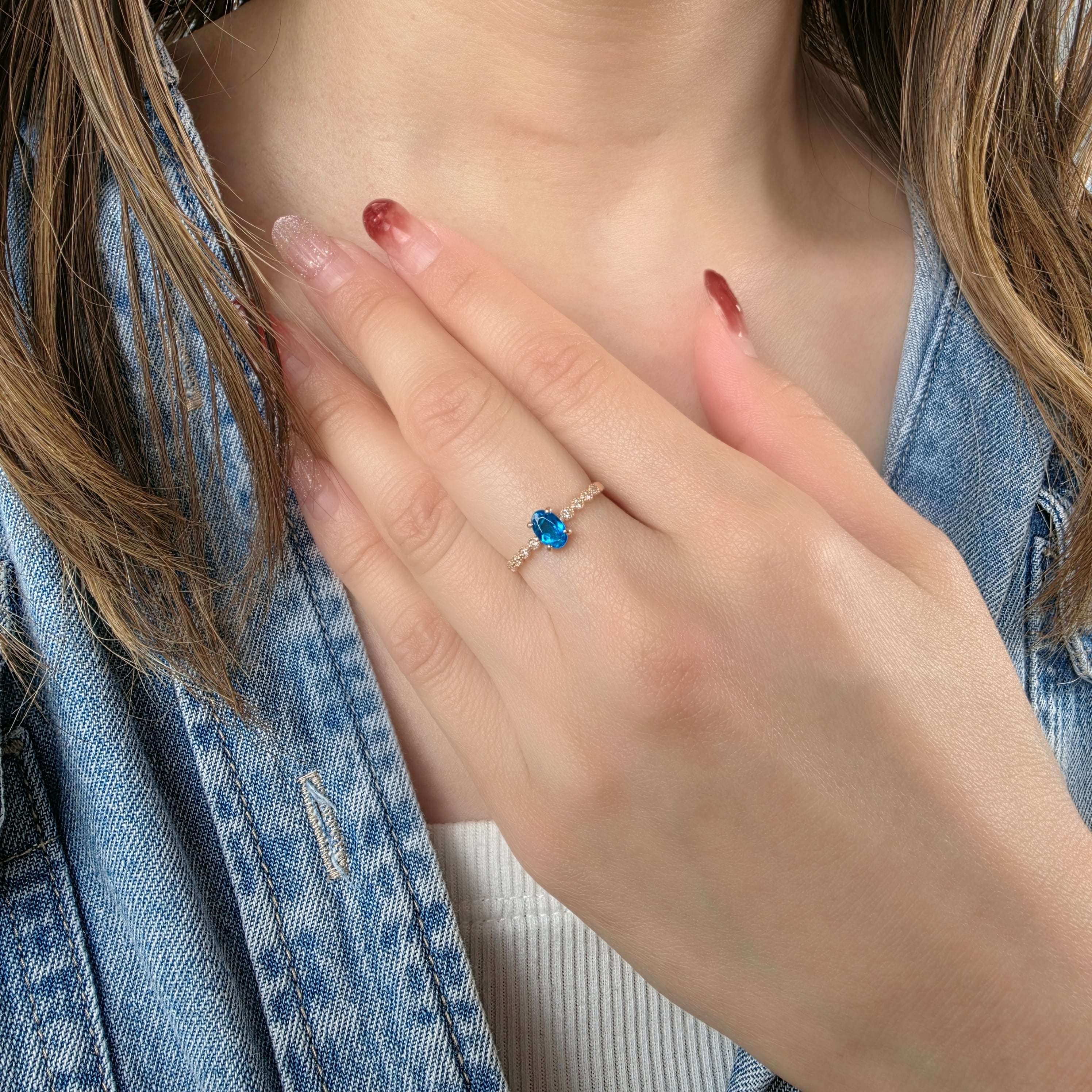澄んだブルーが指先に映える、優しい印象のカジュアルジュエリー。
