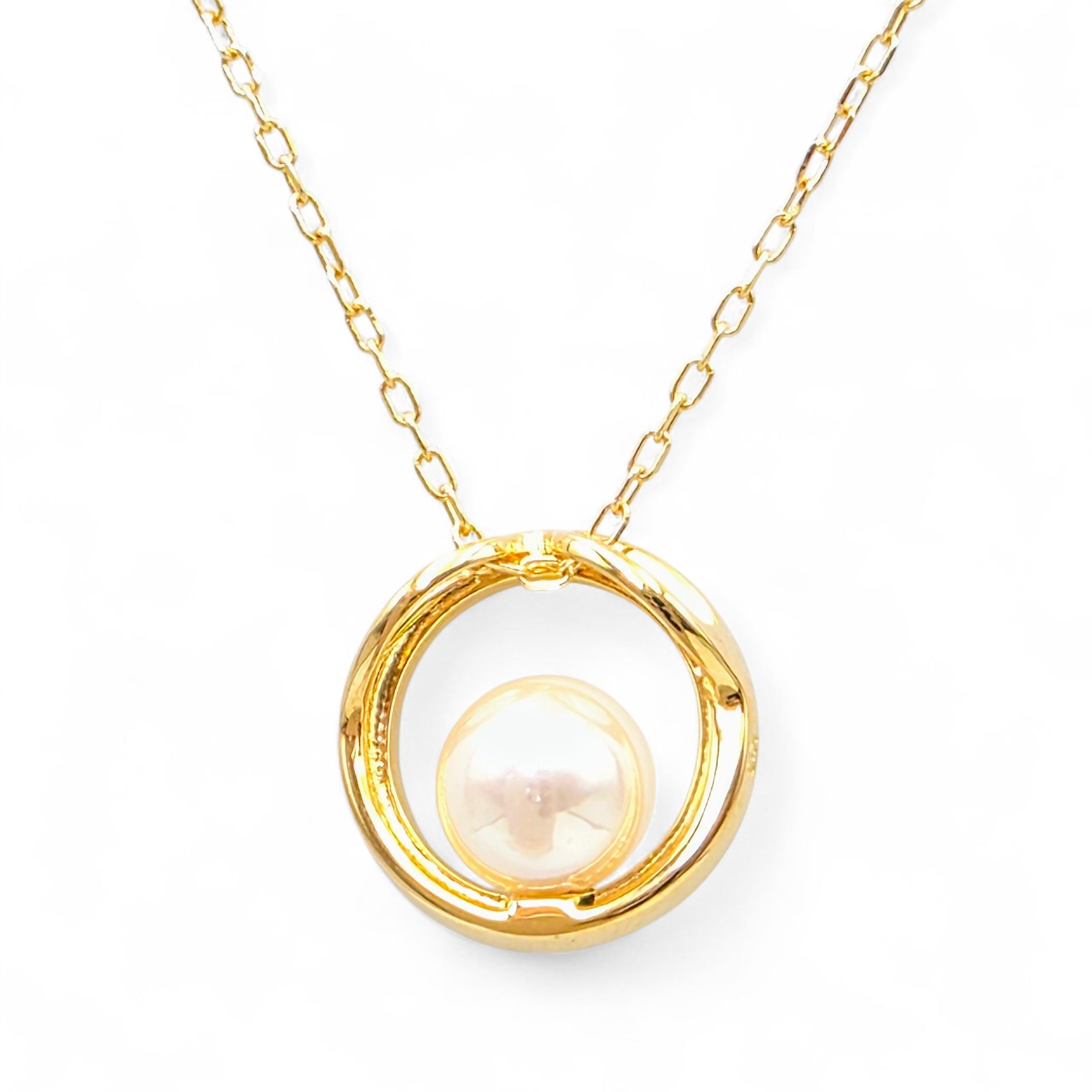 丸みのあるアコヤパールの優しい艶感を、イエローゴールドの滑らかなサークルで包み込むように仕立てた本作。