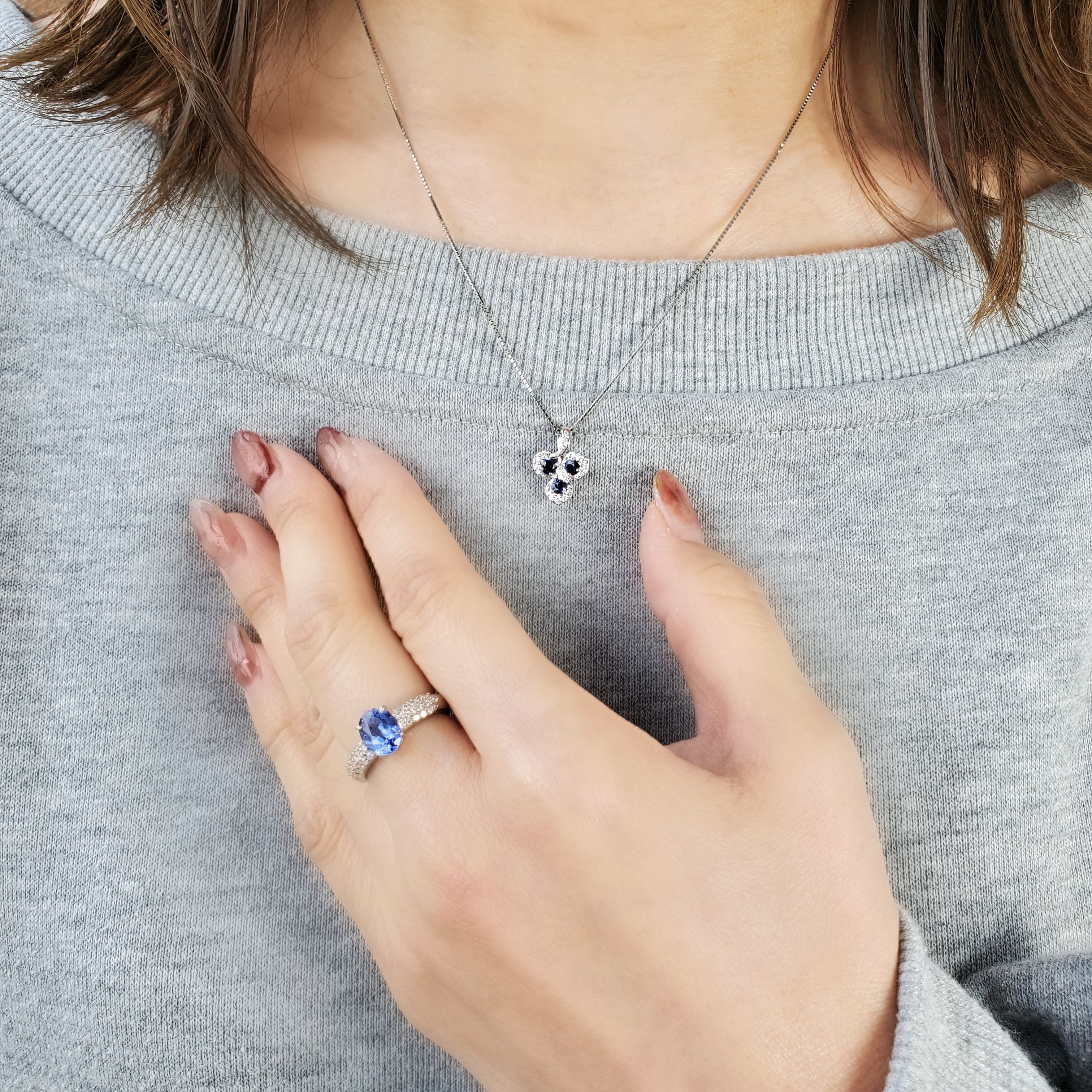 落ち着きのある装いにも馴染み、深いブルーが静かな気品を感じさせてくれるジュエリーです。