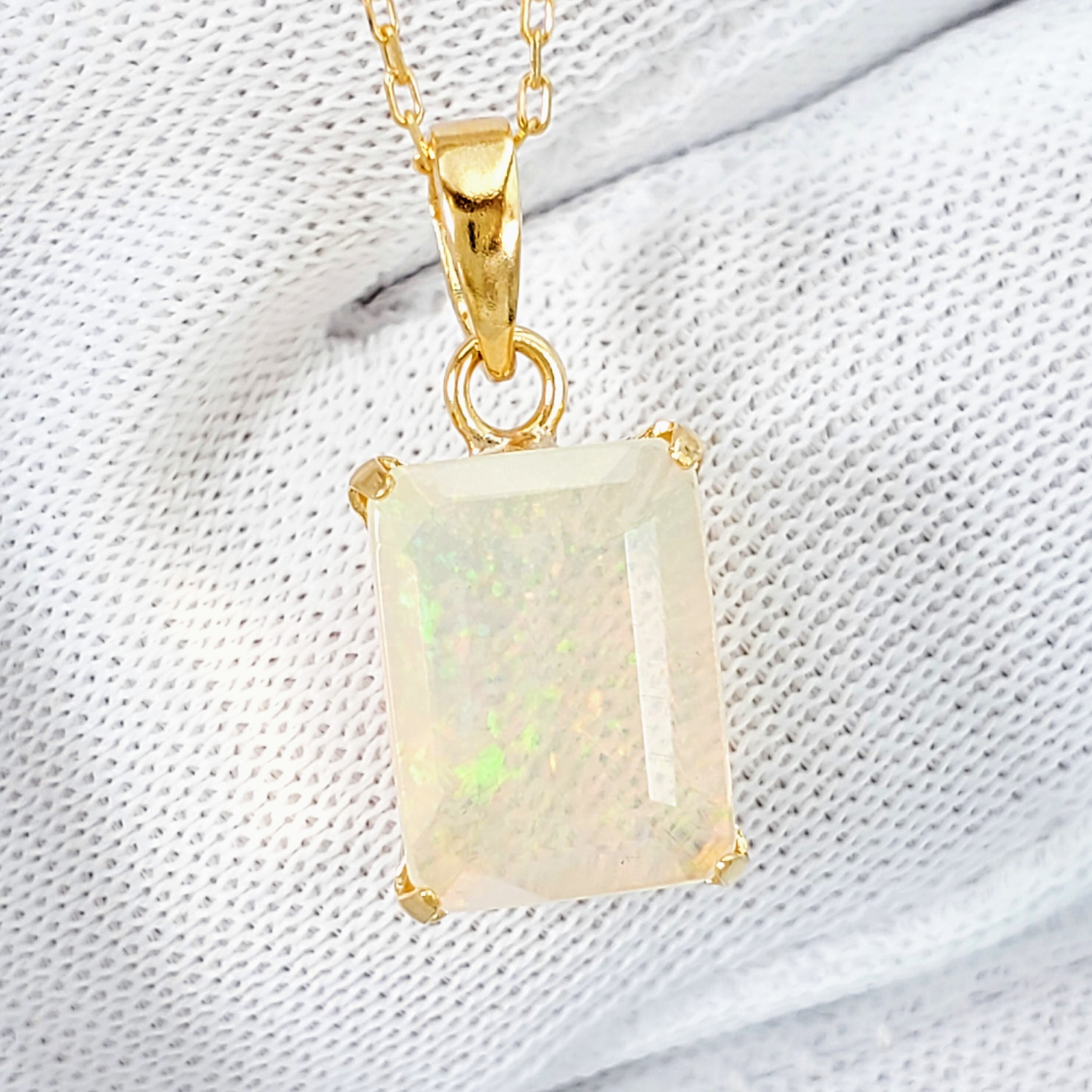 四角いカットでも角が尖りすぎず、オパールの柔らかさをそのまま残した優しい印象が魅力的。