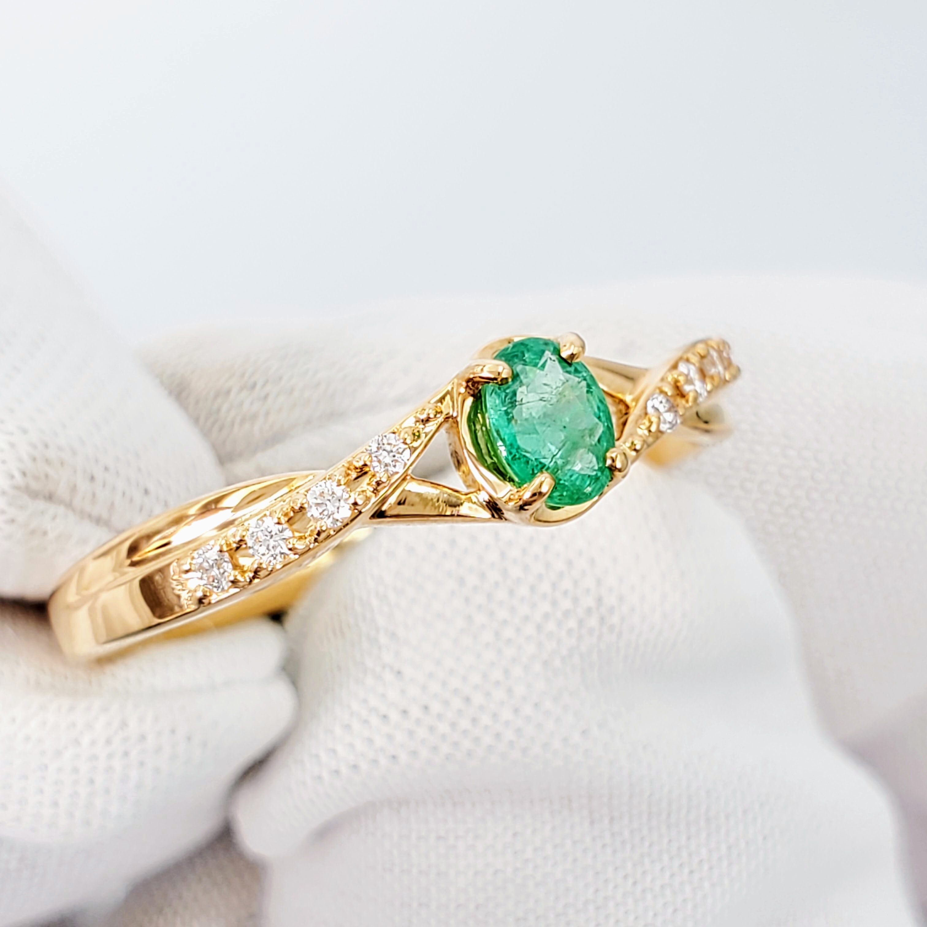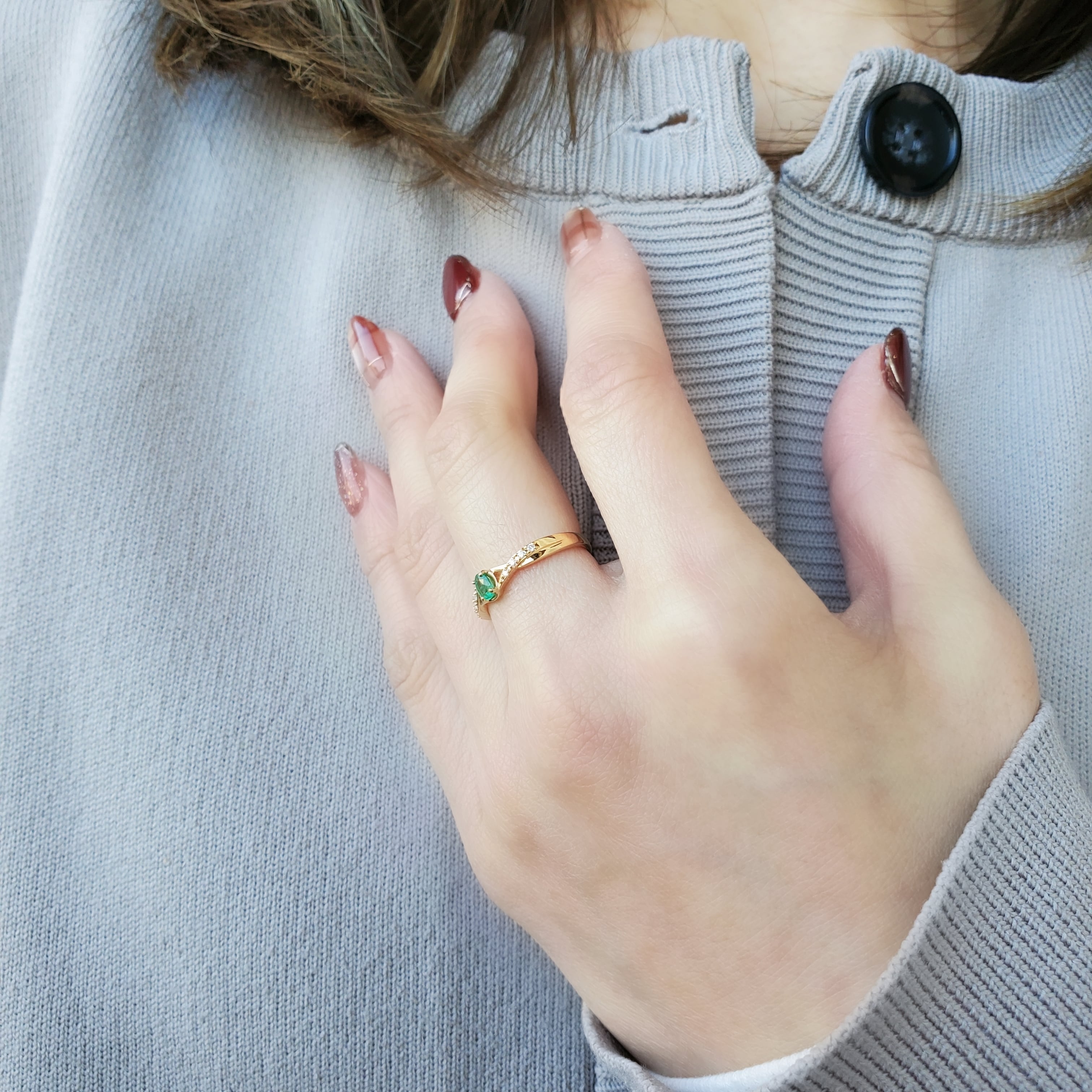 素材:K18イエロー、エメラルド0.16ct(縦約4.5mm・横約3mm)、ダイヤモンド0.04ct