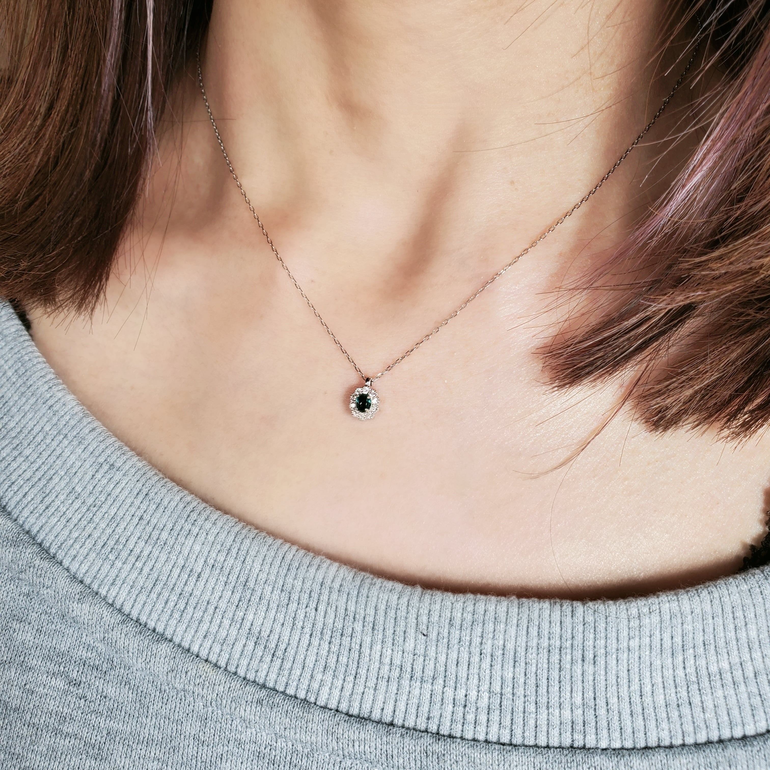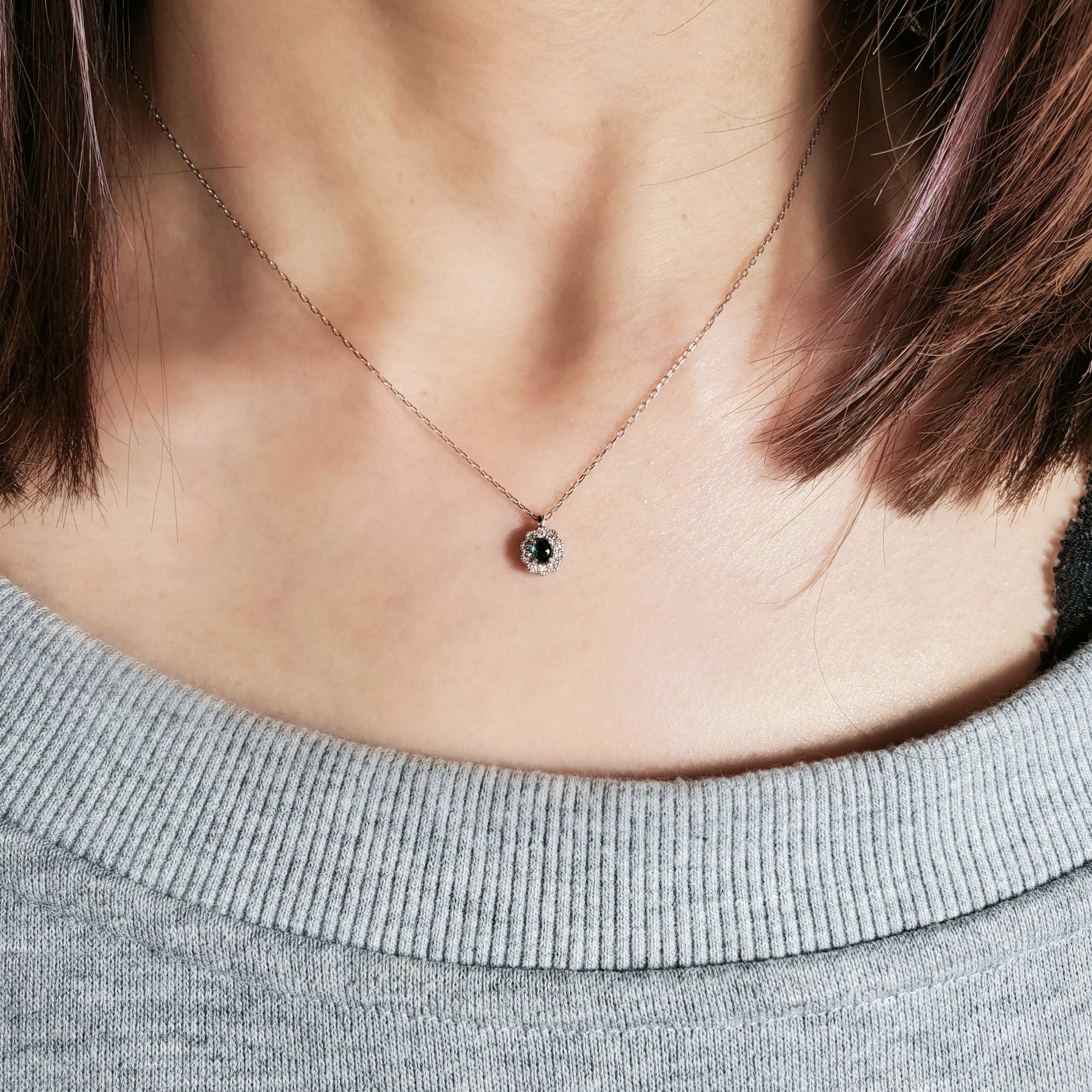 キラキラと強く主張するのではなく内側からじんわりと色がにじむような雰囲気があって、その控えめさがとても上品で、希少石という特別さはありながらも構えずに身につけられるバランス。