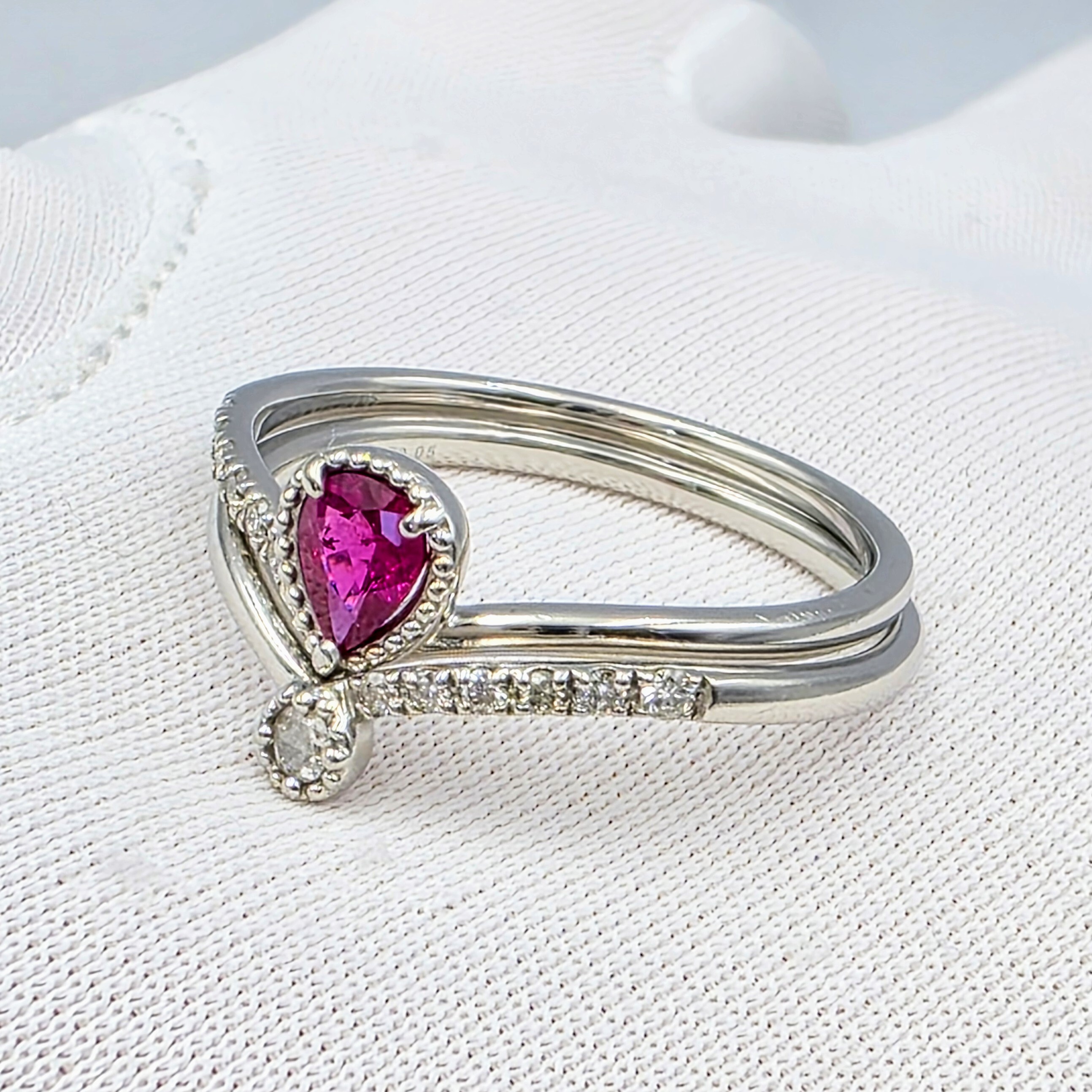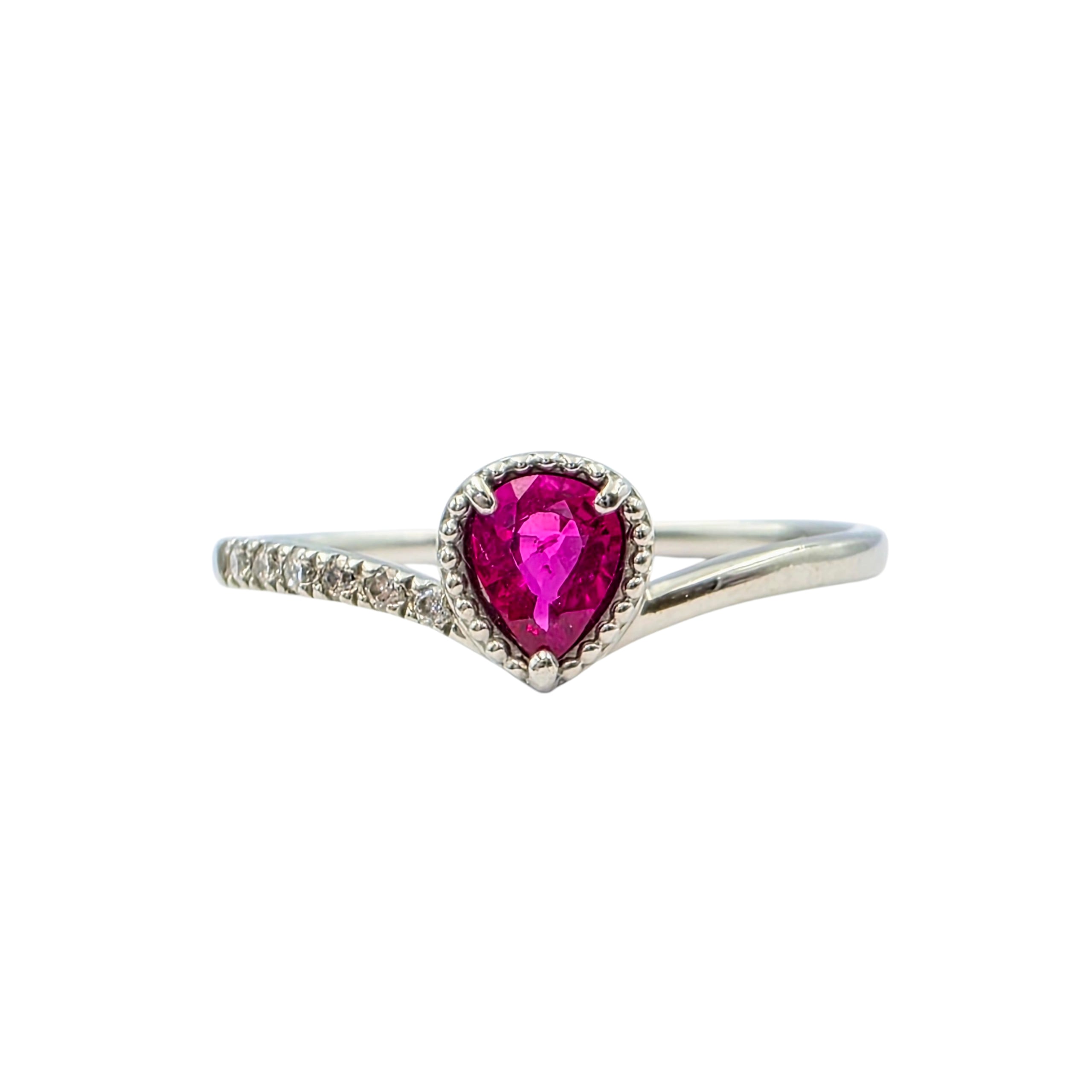 素材:Pt900、ルビー0.28ct(縦約5mm・横約4mm)、ダイヤモンド0.05ct